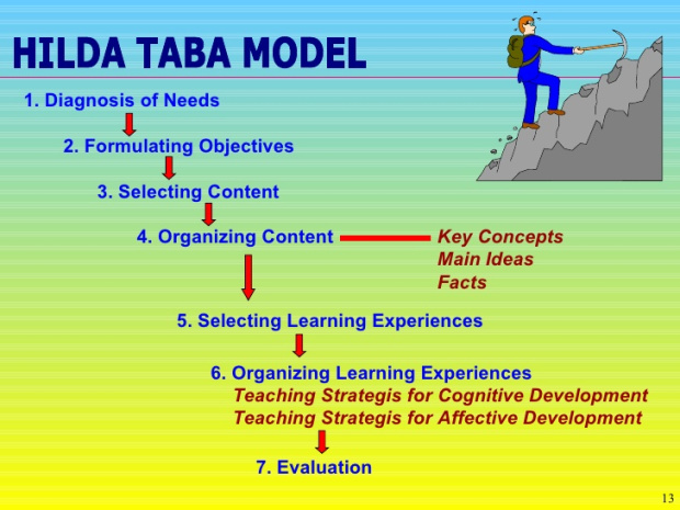 The limitations are more so for an auditory teacher; s/he would need help toward the application. Just reading the words may not produce a visual that draws the teacher where s/he is enticed to put the Taba model into practice. Also, the group of students assigned to each group needs to be balanced and intentional to allow everyone in the group to contribute.
